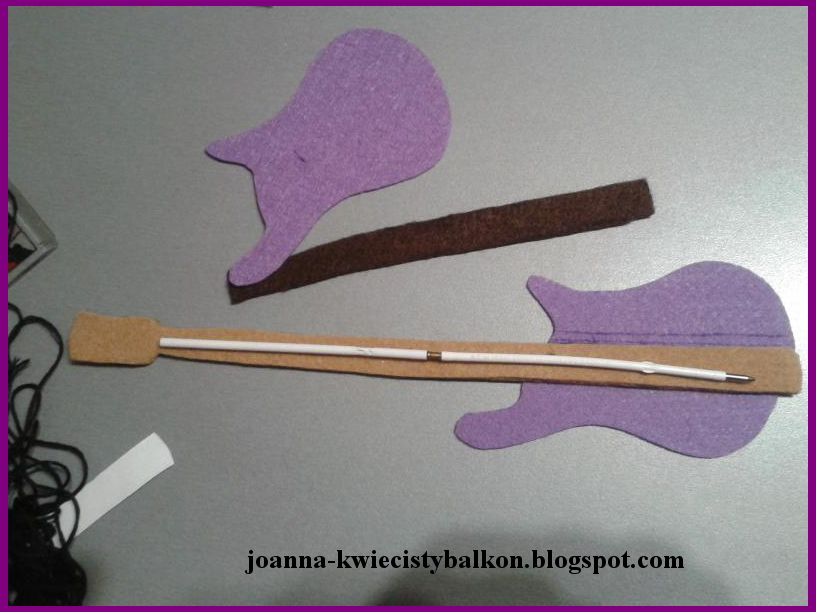 Jasno-brązowy filc był grubszy od fioletowego, ale co tam - gryf musi być sztywny - myślałam.